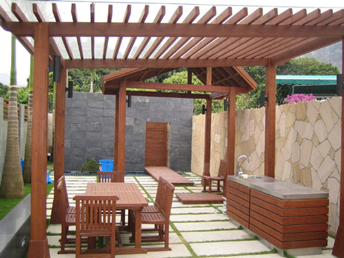 不过,作为户外用的防腐木,它自身的热胀冷缩没有经过特殊的控制,因此变形比较严重。在铺设防腐木地板的时候,通常就需要做成留有缝隙的地板,并且像镂空的一样一块被架起来,可以随时翻开,方便清洗或者捡拾掉落的东西。